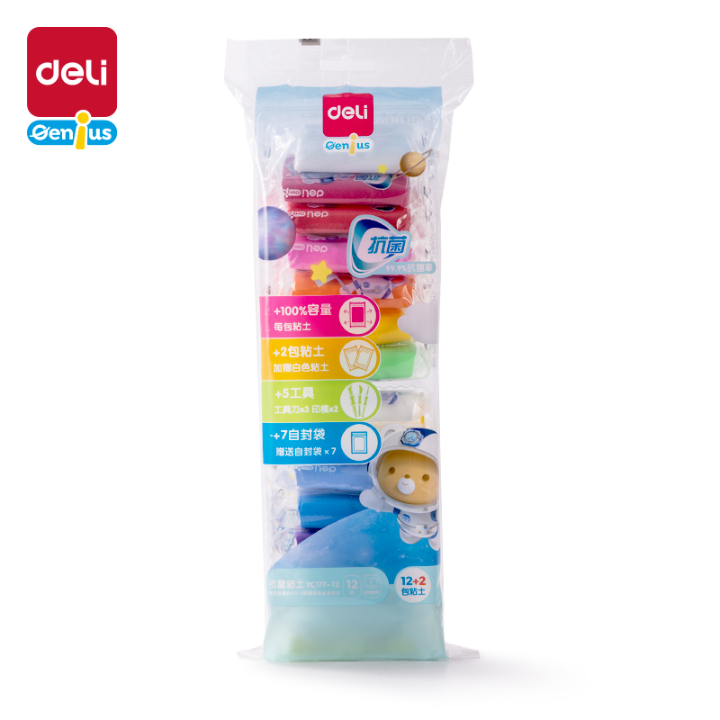 得力YC177-12-大容量袋装抗菌粘土(混)(72袋/中)