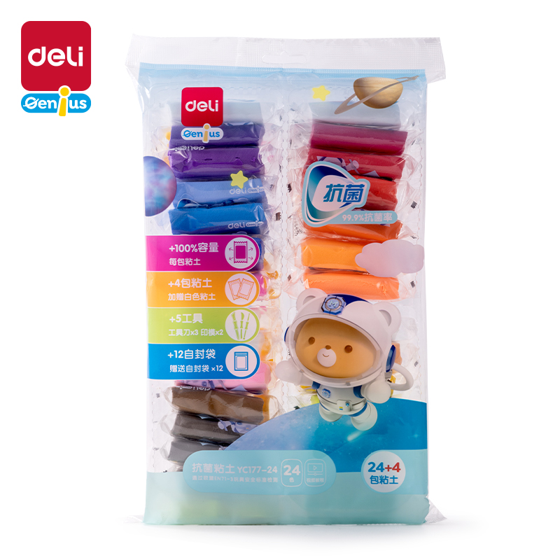 得力YC177-24-大容量袋装抗菌粘土(混)(36袋/中)