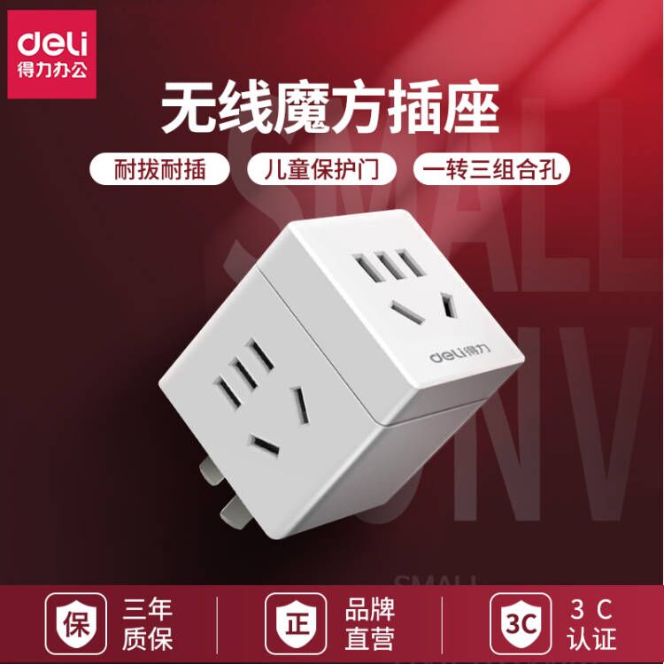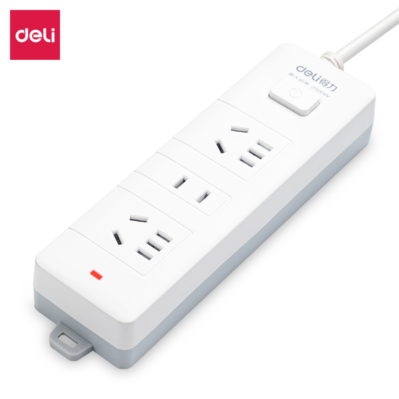 得力18169-03-3+3插孔/3m延长线电源插座(白)(12个/中)
