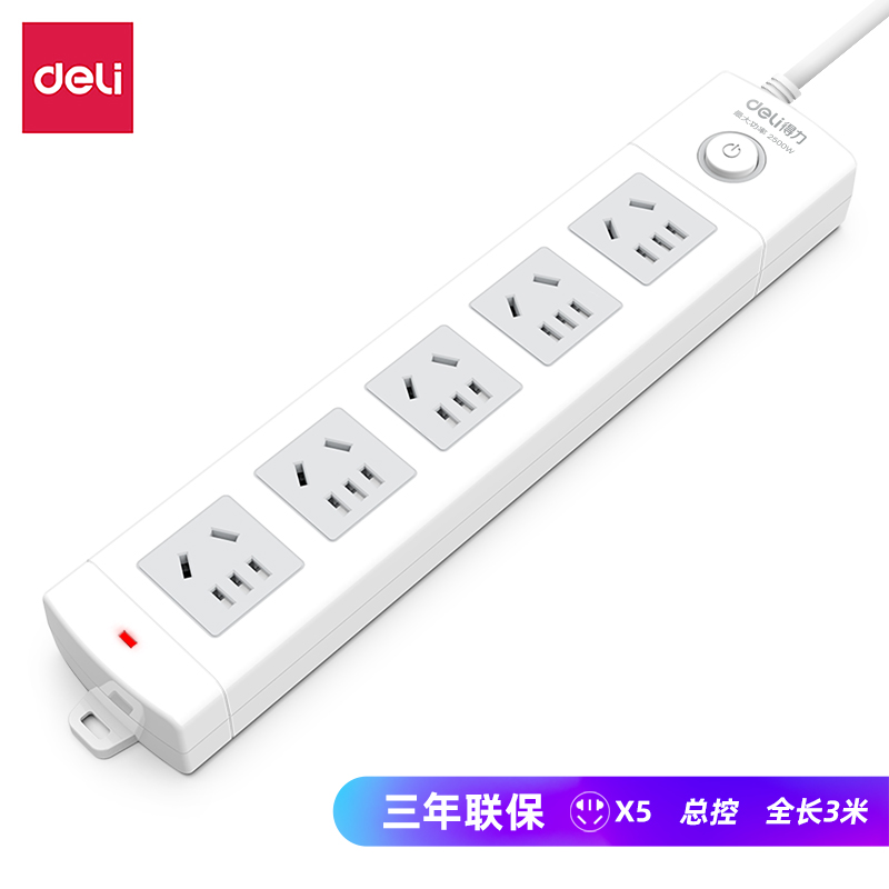 得力18275-03-10组合插孔/3m延长线插座(白)(12只/盒)