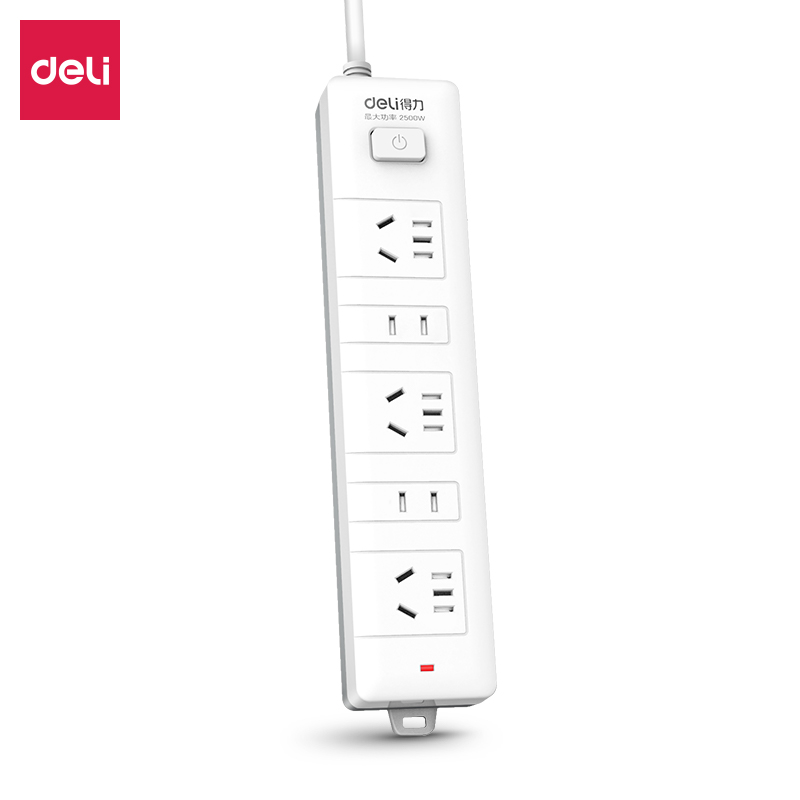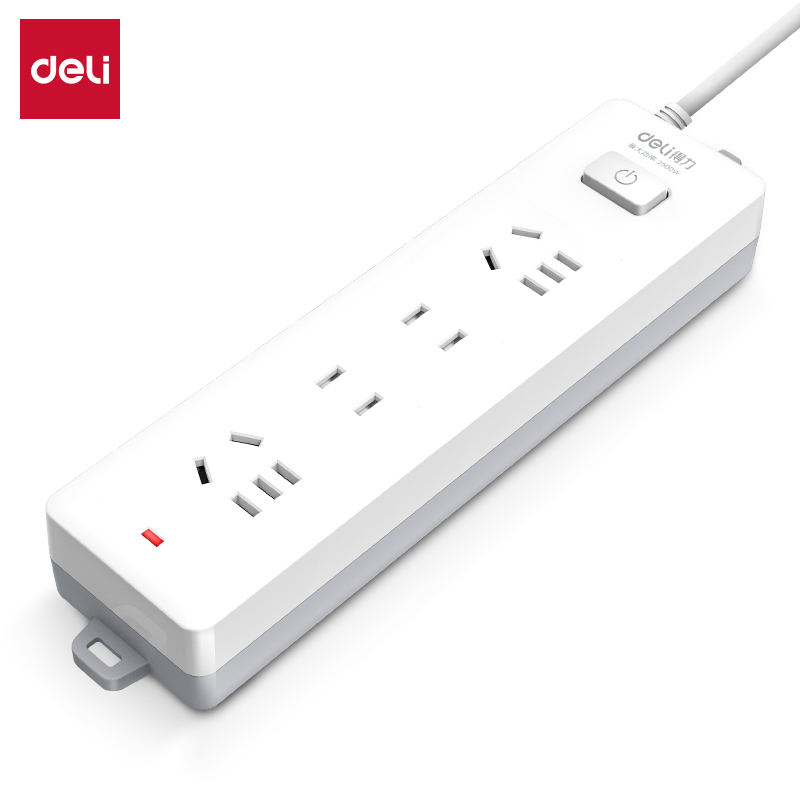 得力LX3032(1.8)-3组2A1C/1.8米彩盒装插座(白)(12个/中)