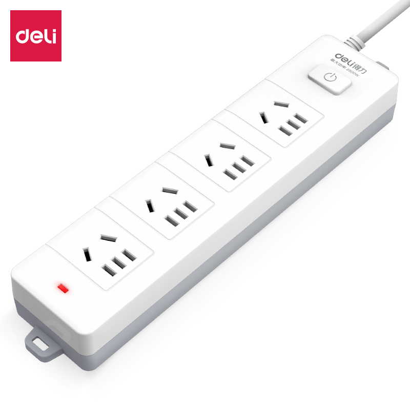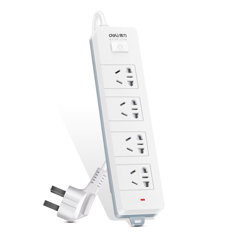得力18253(02)-4组盒2米PVC袋装插座(白)(12只/中)