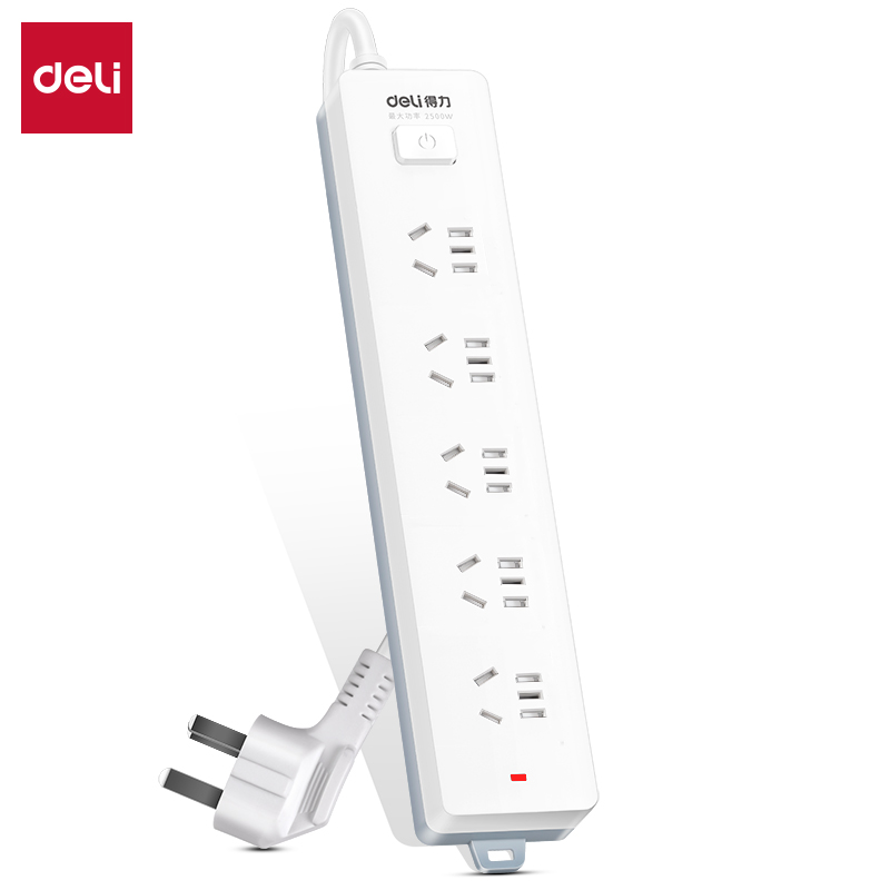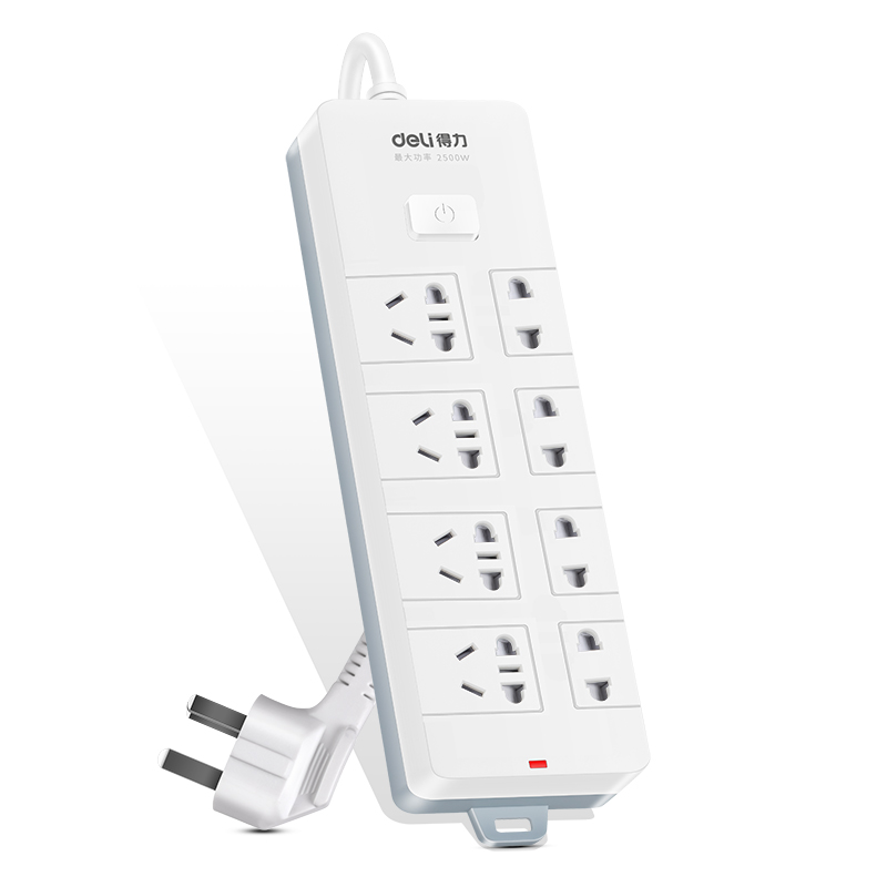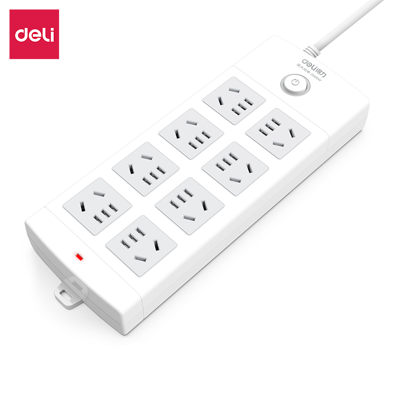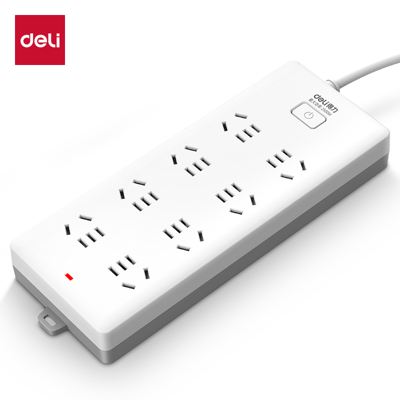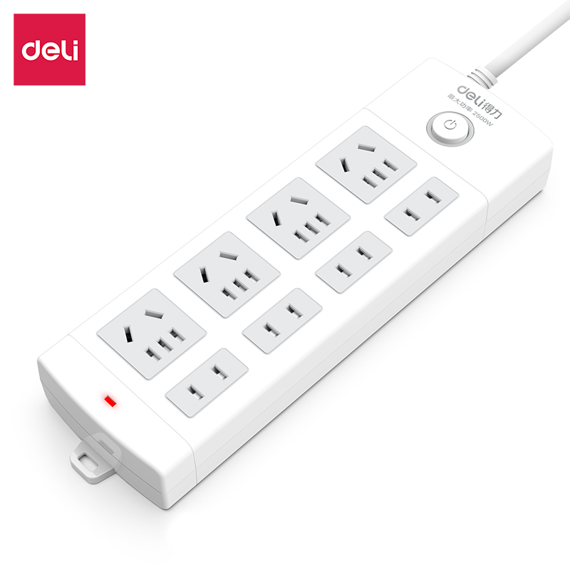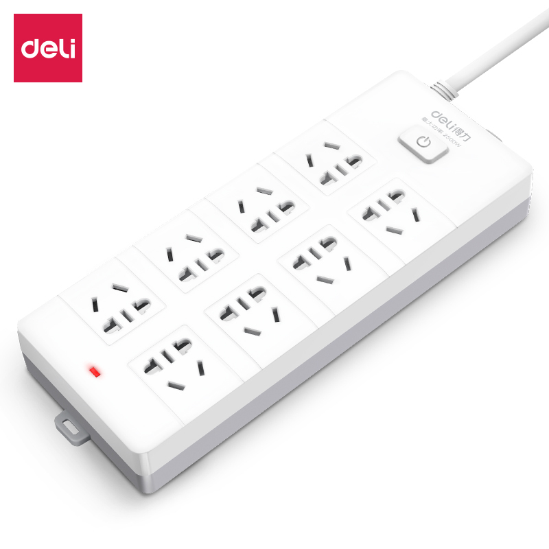 得力18263-8组合插孔/5m电源插座(白色)(12只/盒)