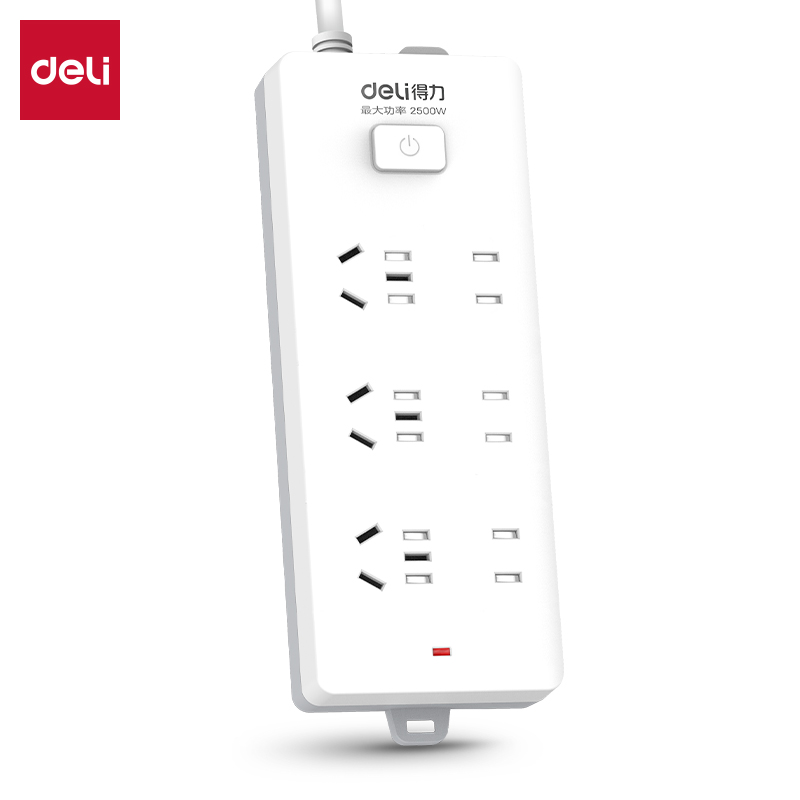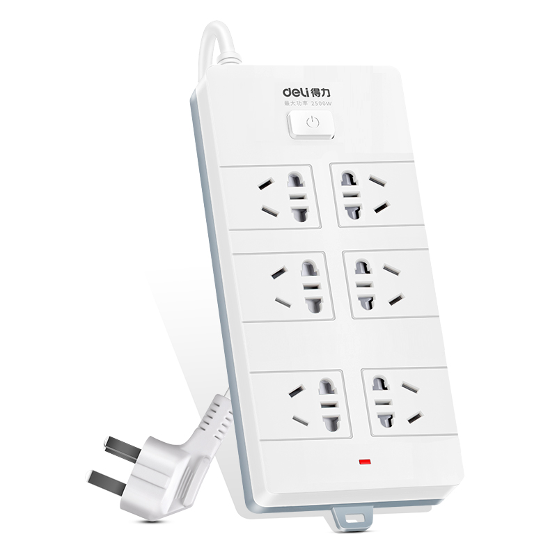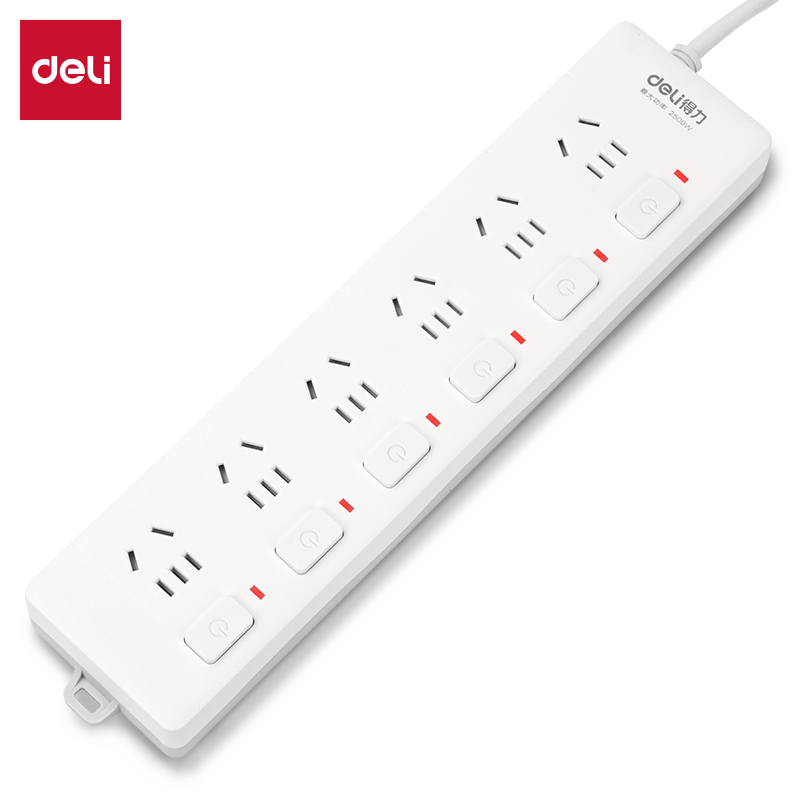 得力18260-6组合插孔/3m电源插座(白色)(12只/盒)