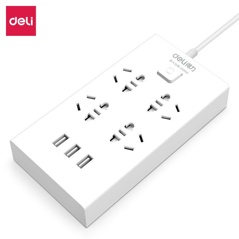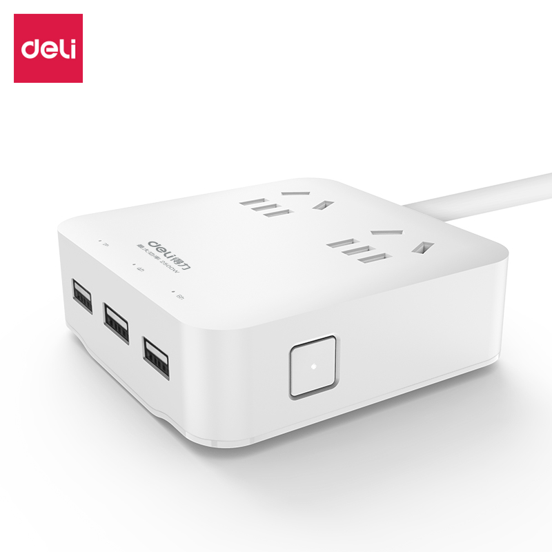 得力18285-3组合+2U/1.8m电源适配器插座(白)(30只/盒)