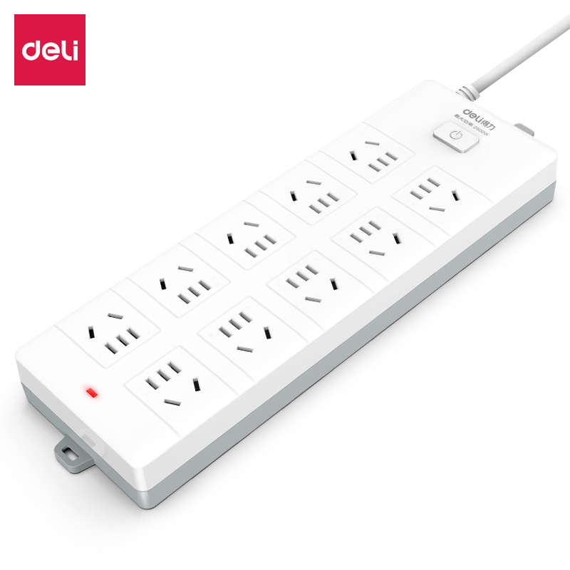 得力18263-8组合插孔/5m电源插座(白色)(12只/盒)