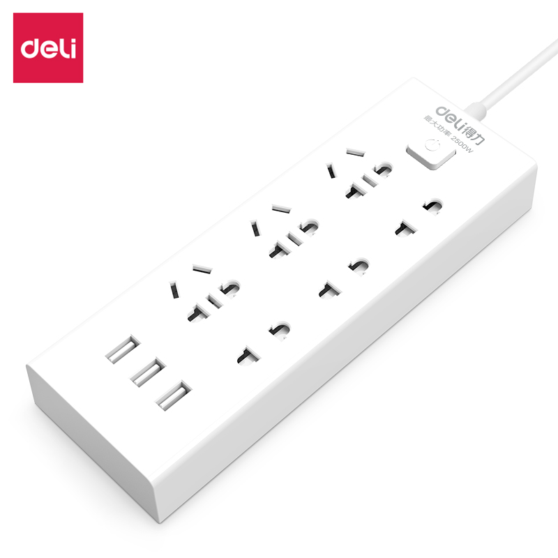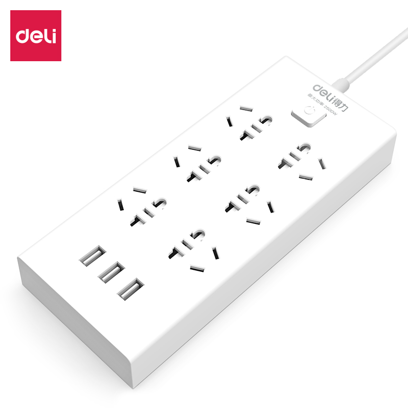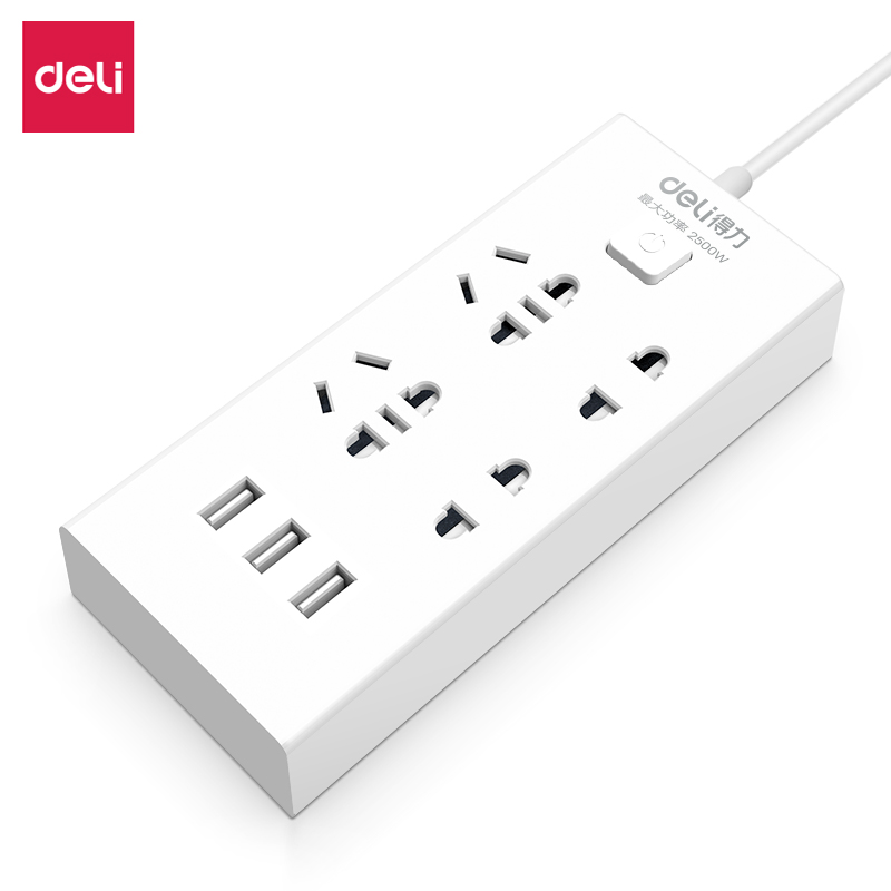 得力18290-3组+2U+1C/1.8米插座(白)(24只/中)