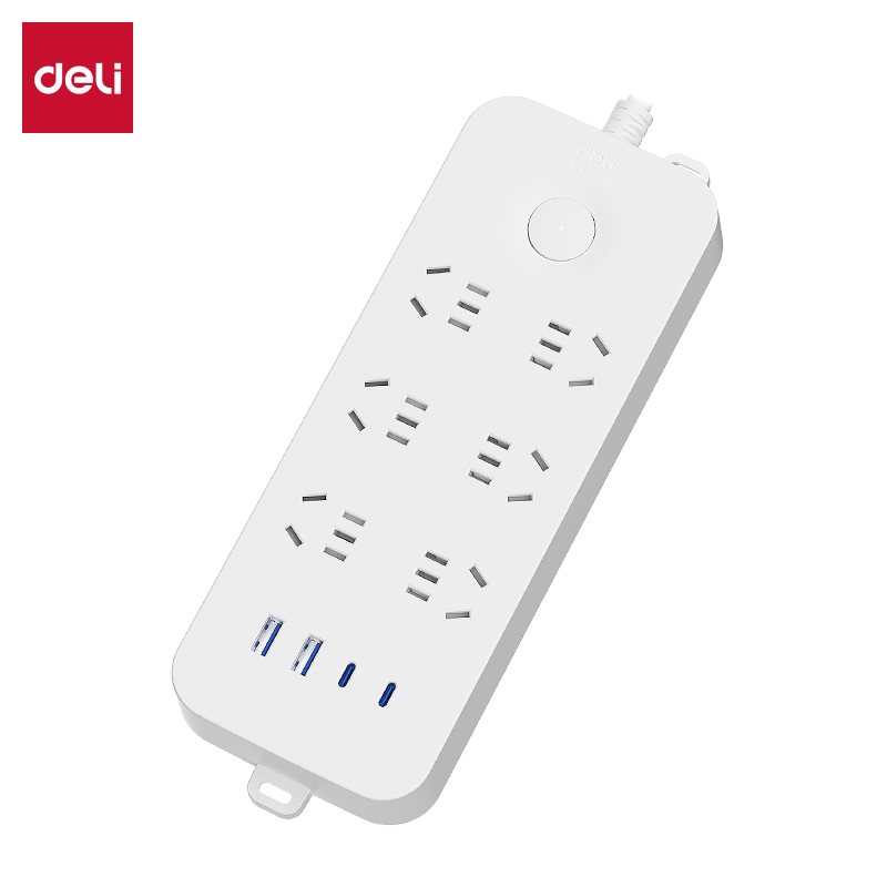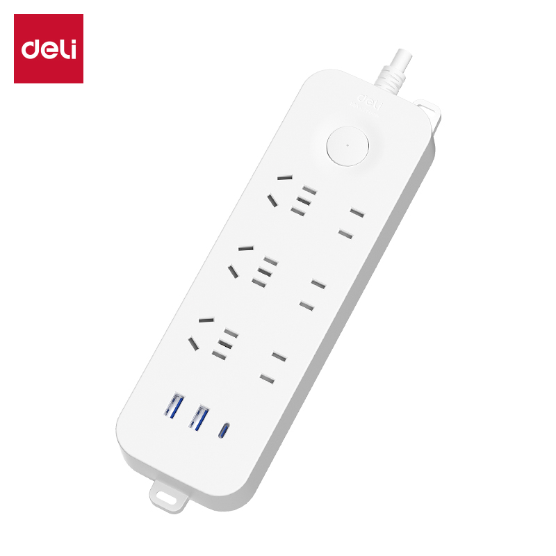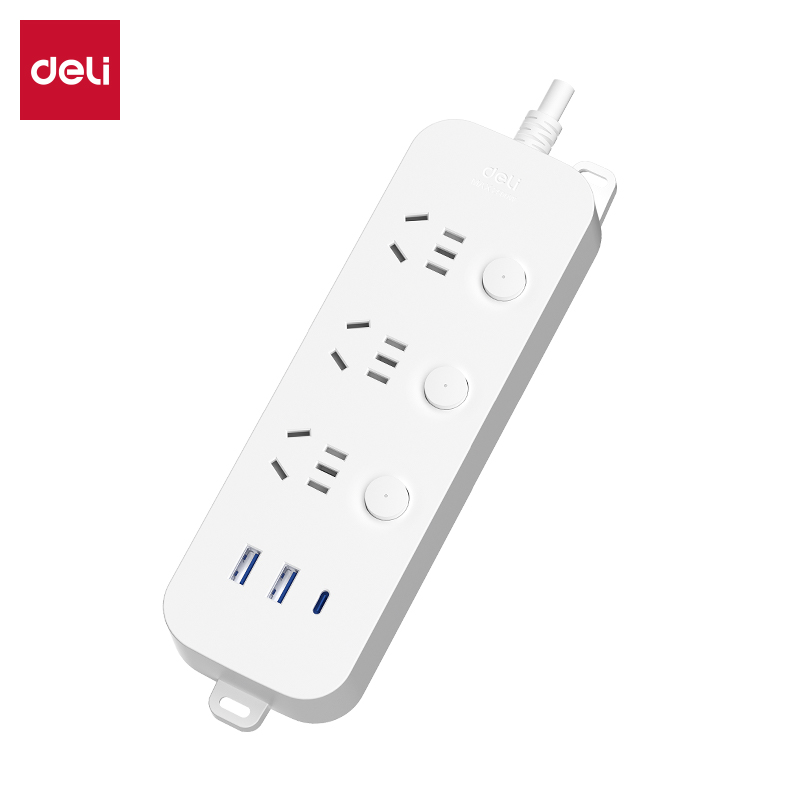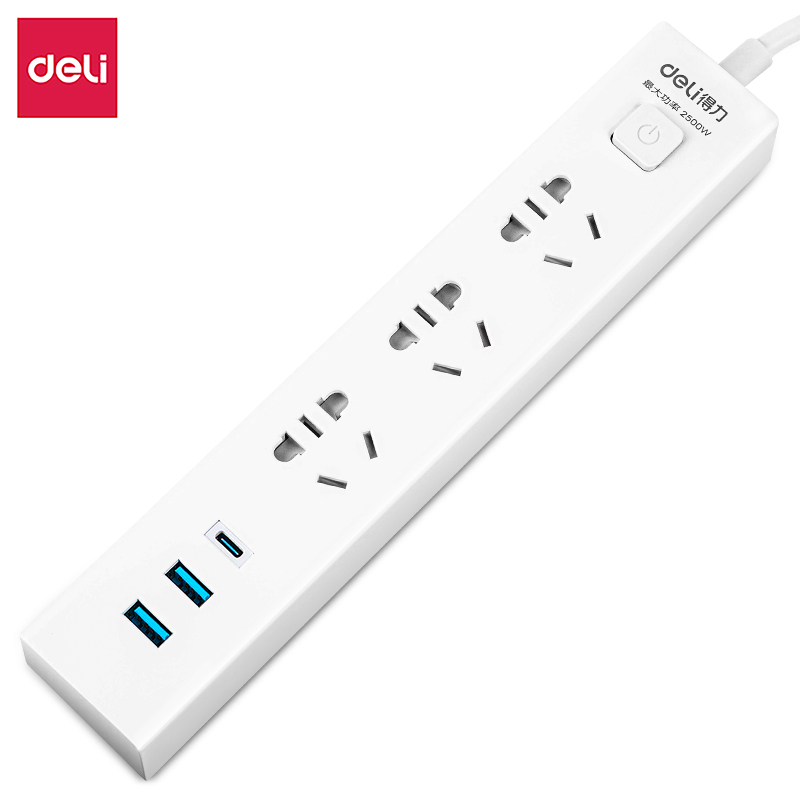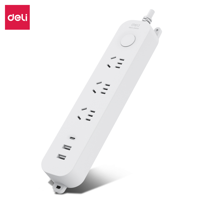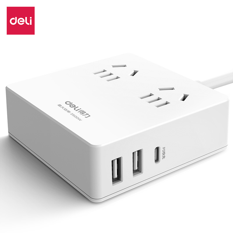 得力18290-3组+2U+1C/1.8米插座(白)(24只/中)