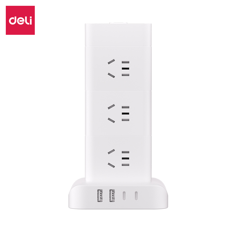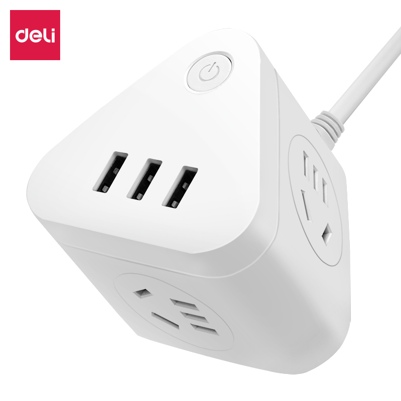 得力LX3033(1.8)-3+3+2A1C/1.8米彩盒装插座(白)(12个/中)