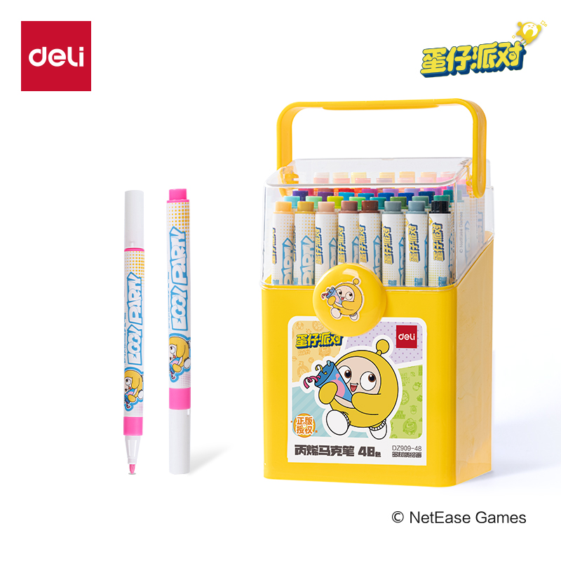 得力DZ909-48色蛋仔派对PP桶装圆杆丙烯马克笔(混)(6桶/中)