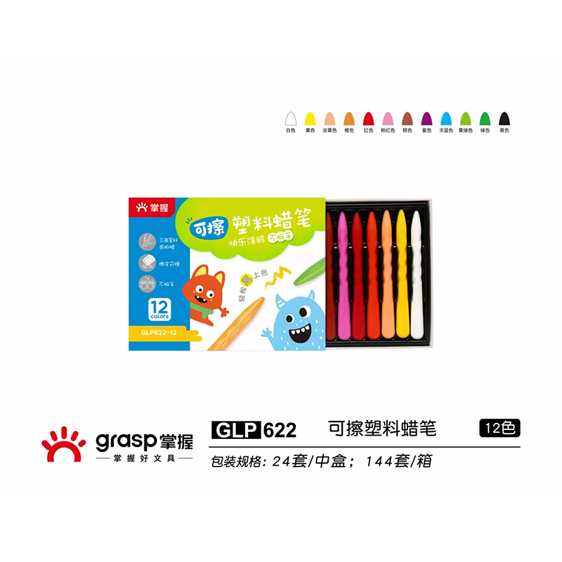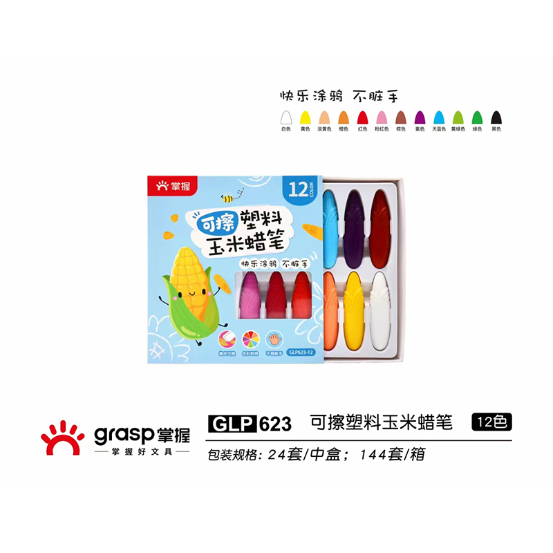 掌握GLP623-12-12色可擦塑料玉米蜡笔