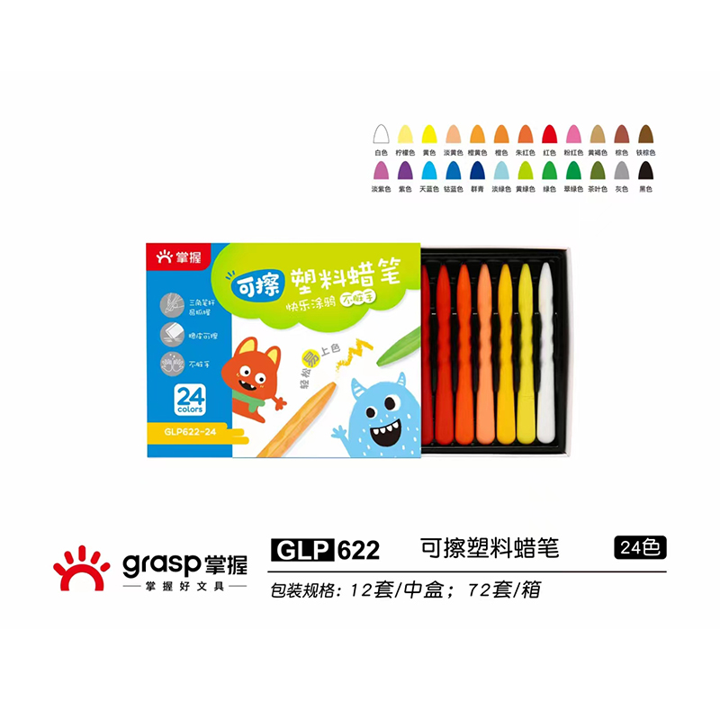掌握GLP622-24-24色三角杆可擦塑料蜡笔