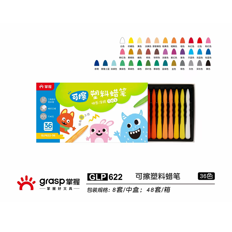 掌握GLP622-36-36色三角杆可擦塑料蜡笔