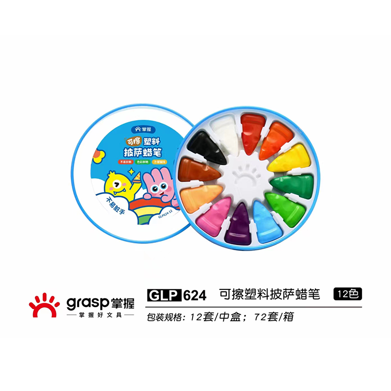 掌握GLP624-12-12色可擦塑料披萨蜡笔