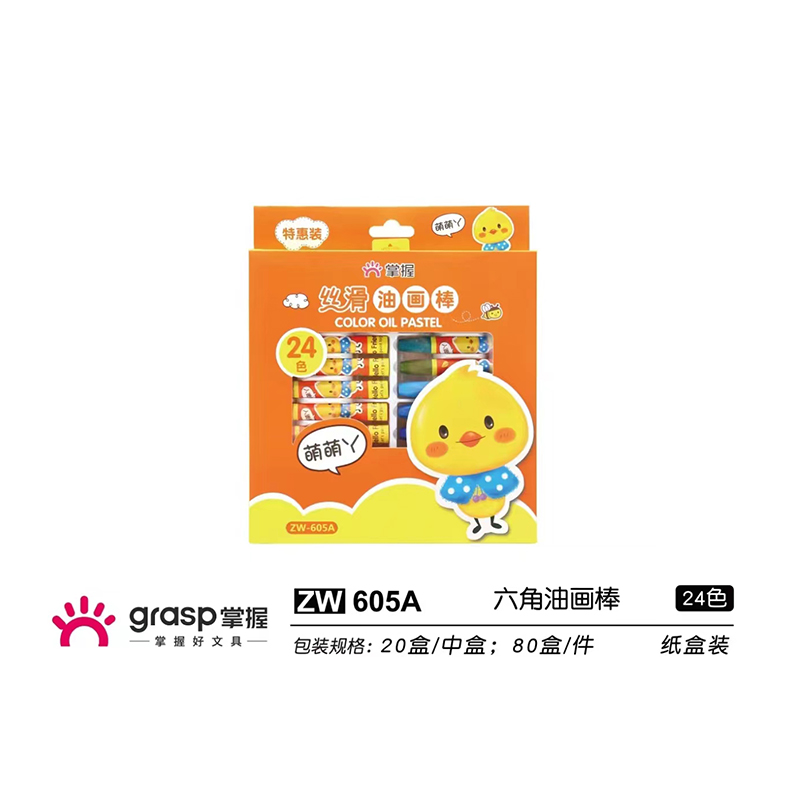 掌握ZW605A-24-24色六角油画棒纸盒装