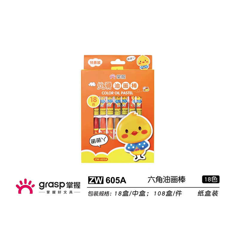 掌握ZW-605B-18-18色六角油画棒PP盒装