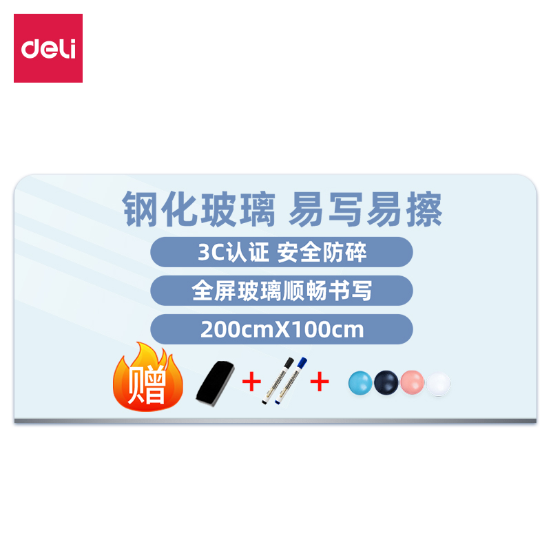 得力50072-芭蕾支架磁性玻璃白板900*1800mm