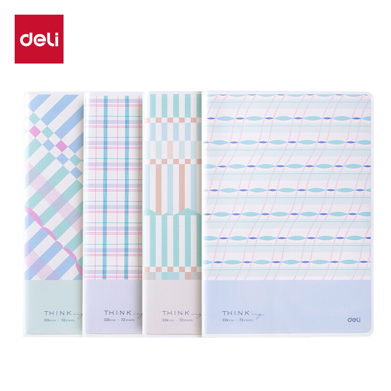 得力T3272-P-32K/72页行纭胶套本(行纭格次方)(4本/包)