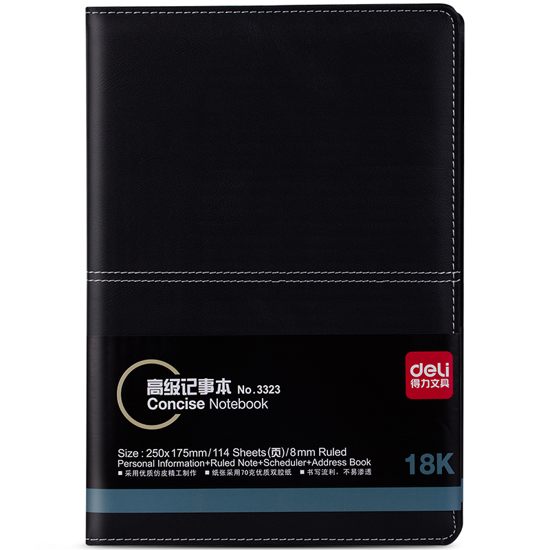 得力3323-16K/112页商务记事本(黑)(24本/盒)