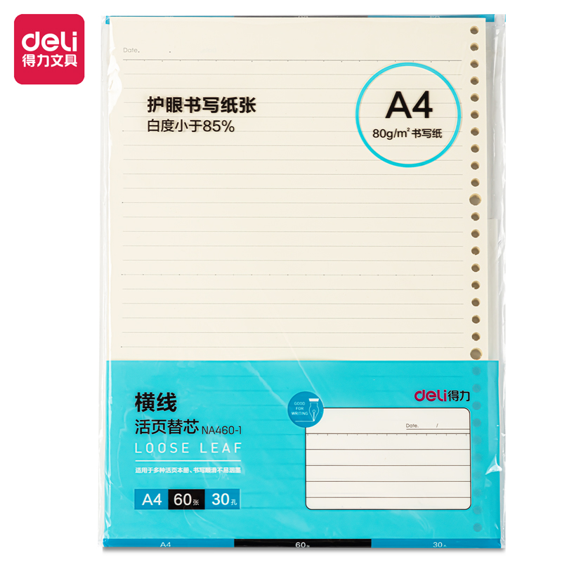 得力NA460-1-A4/60页活页替芯(横线)(48本/中)
