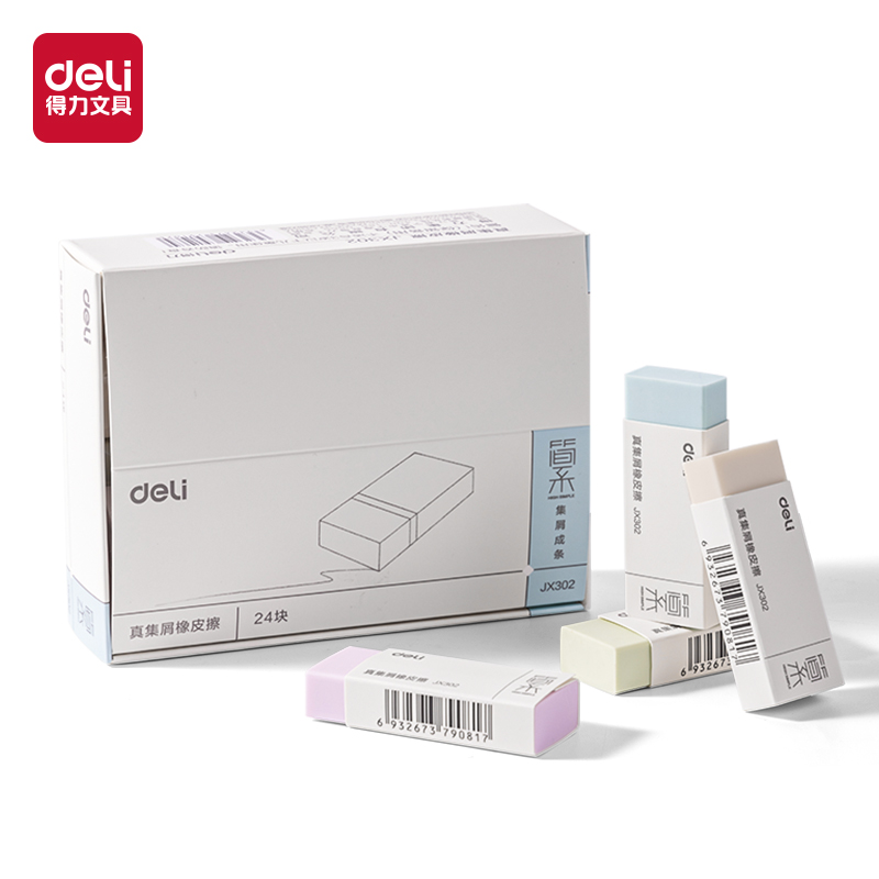 得力JX302-简系真集屑橡皮擦(中)(混)(24块/中)