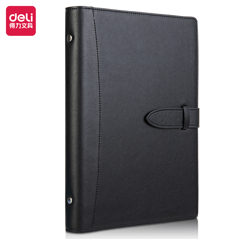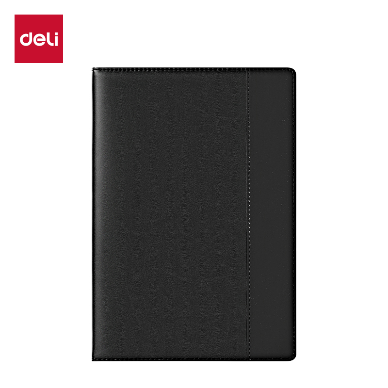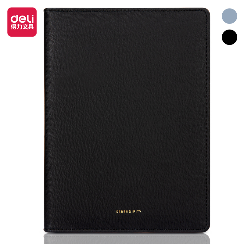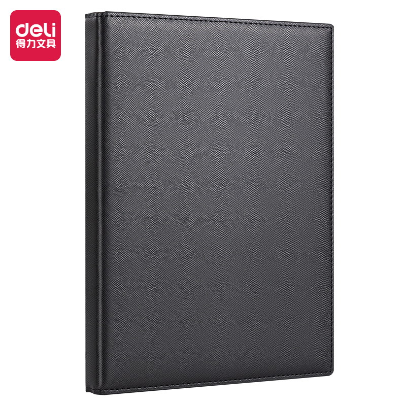 得力22801-16K/100页接接PU双包活页记事本(黑色)(12本/中)