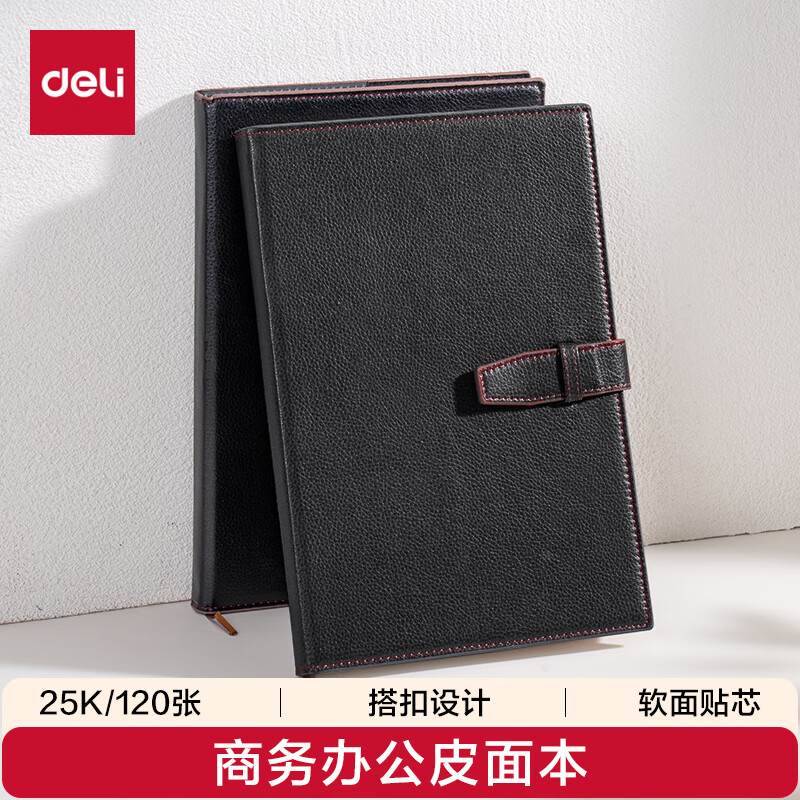 得力22264-25K/120张软面PU记事本(黑色)(12本/中)