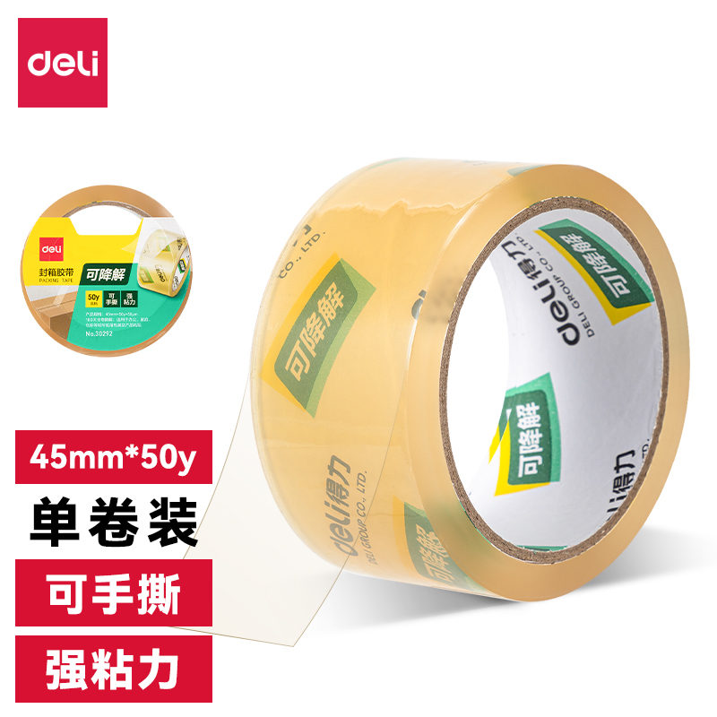 /得力30292-可降解封箱胶带45mm*50y*50μm(透明)(1卷/热缩)