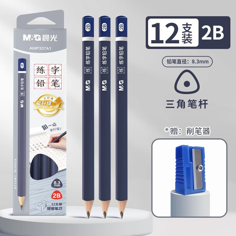晨光AWP307A1-HB/12支装三角木杆学生练字铅笔(24盒/中)