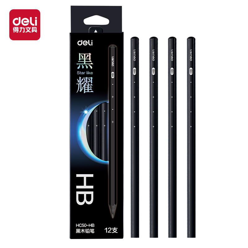 得力HC50-HB/12支黑耀六角杆书写铅笔(黑)(24盒/中)