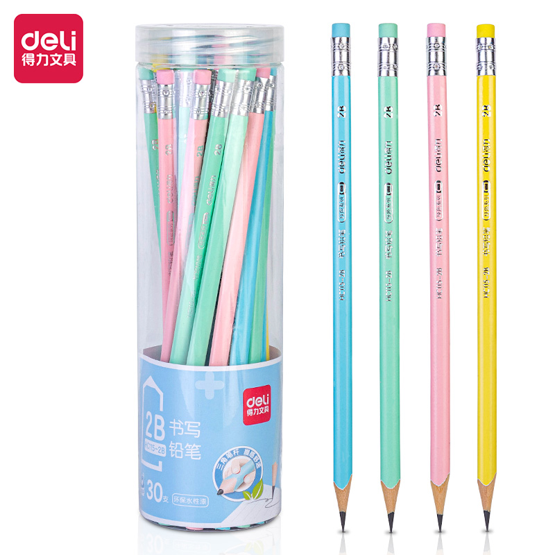 得力HC115-2B-30支筒纯色系列桶装2B铅笔(混)(12筒/中)