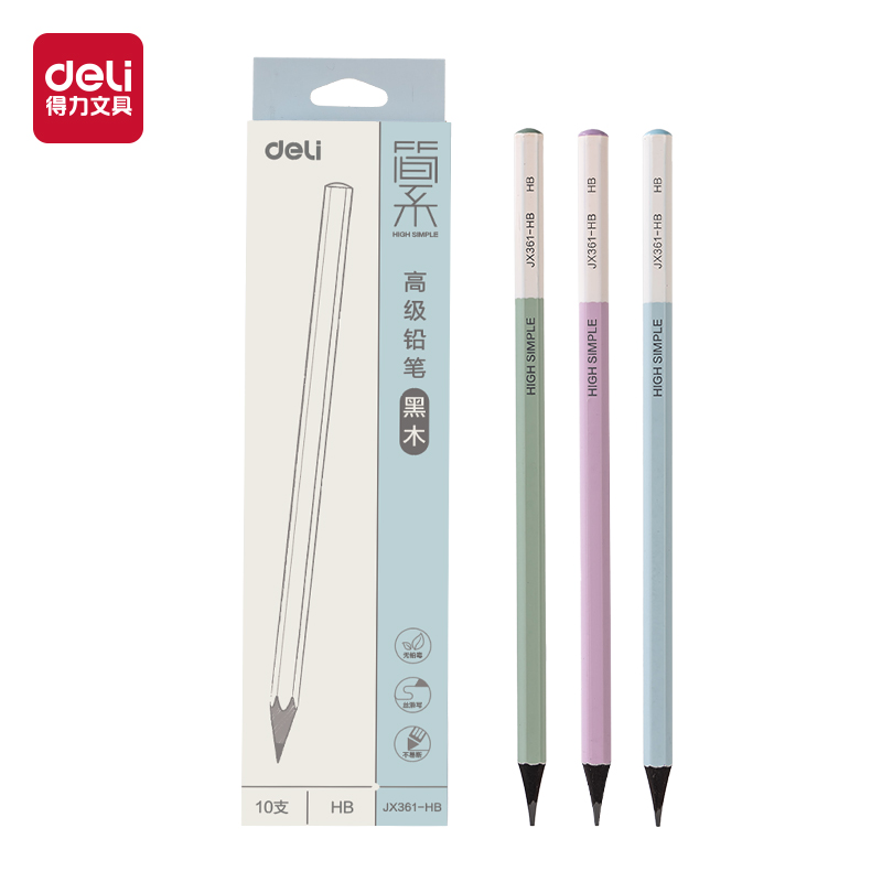 得力JX361-HB/10支简系六角杆黑木书写铅笔(混)(24盒/中)/2B