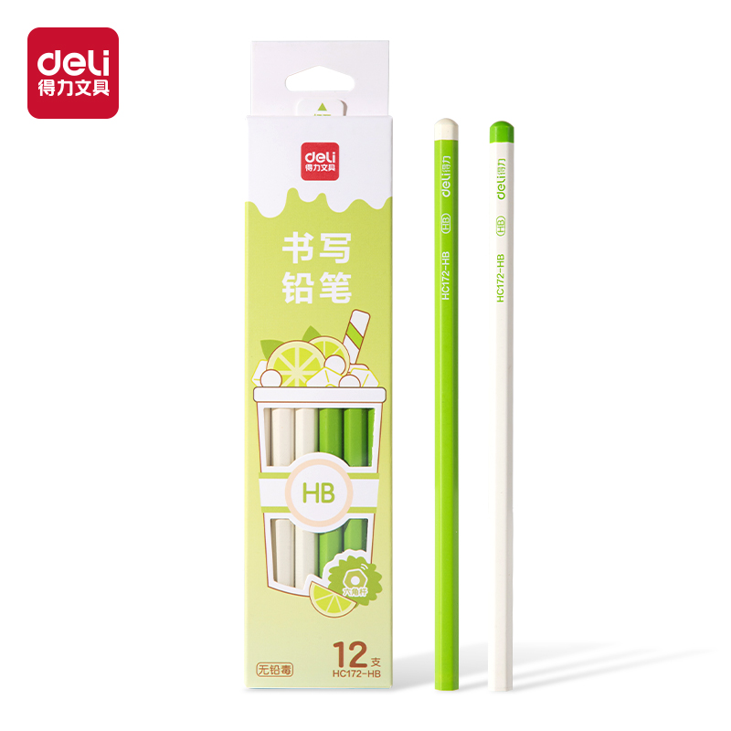 得力HC172-2B-12支奶茶六角杆书写铅笔(混(24盒/中)/HB