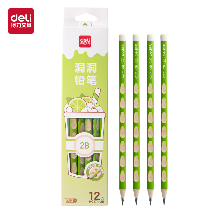 得力HC171-2B-12支奶茶洞洞书写铅笔(混)(24盒/中)/HB