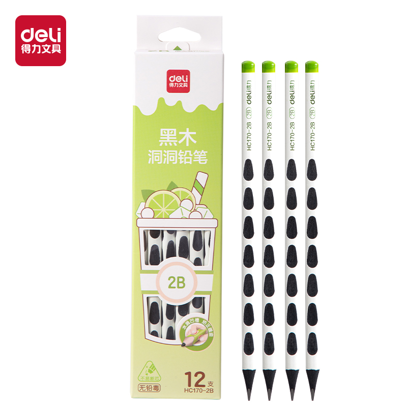 得力HC170-2B-12支奶茶黑木洞洞书写铅笔(混)(24盒/中)/HB