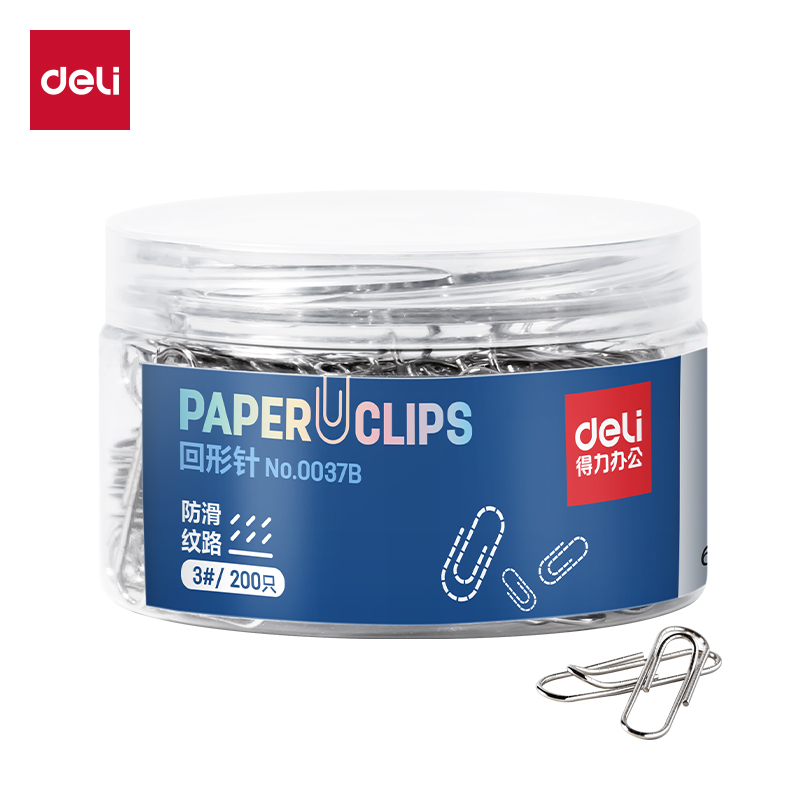 得力0037B-办公专供防滑回形针(银)(48筒/中)