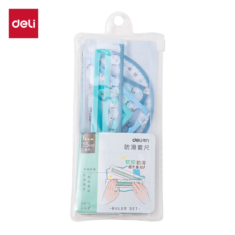 得力V615-15cm包胶套尺(浅蓝)(24套/中)