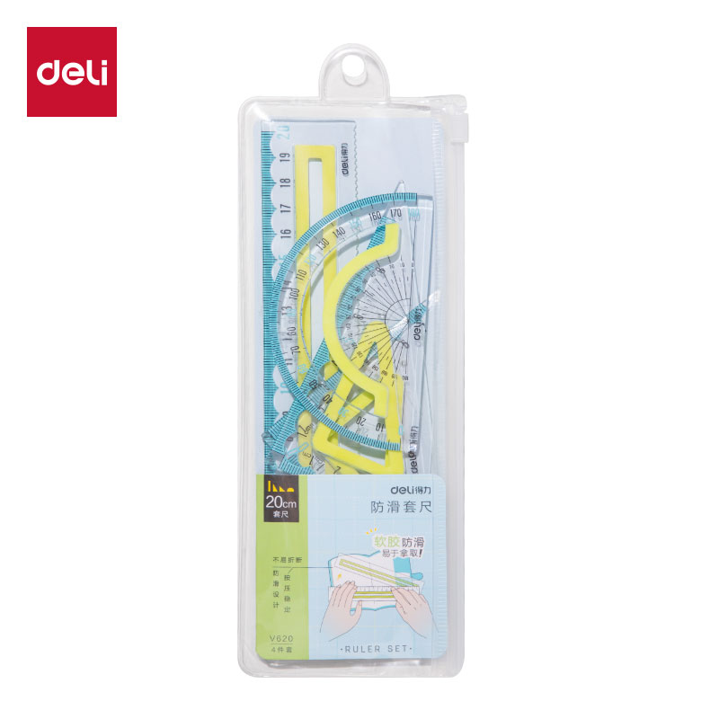 得力V620-20cm包胶套尺(浅绿)(24套/中)/深蓝/浅蓝