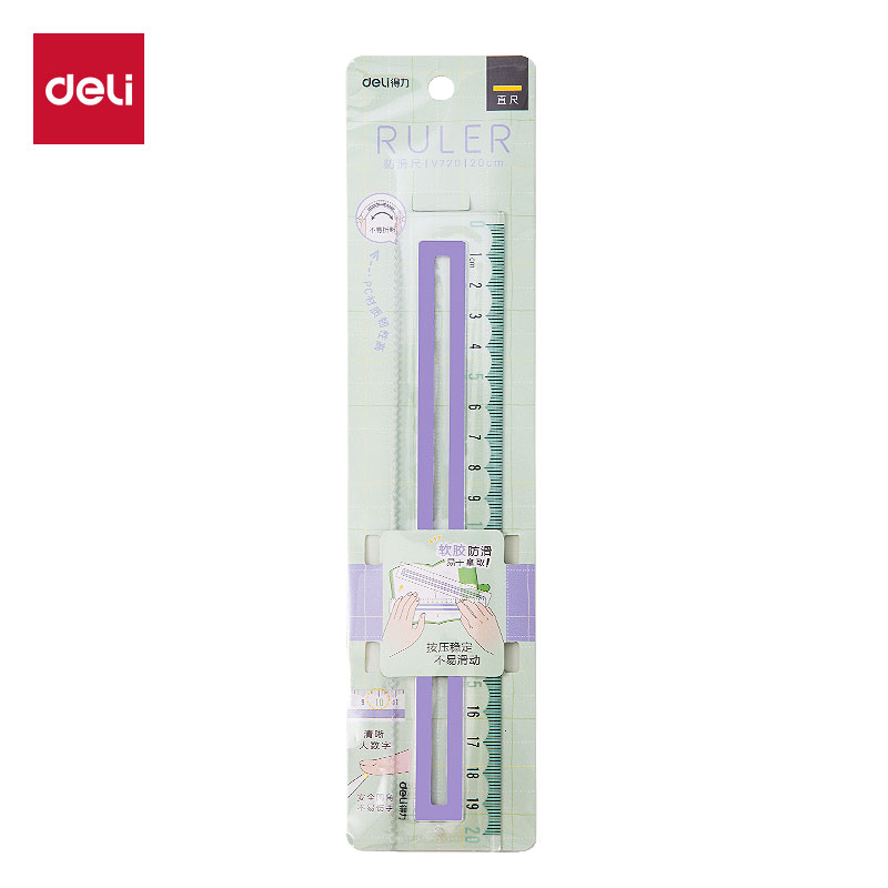 得力V720-20cm包胶直尺(浅绿)(40把/中)/浅蓝/深蓝