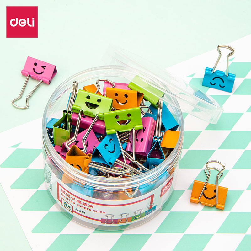 得力8554-48只桶装25mm精装彩色长尾票夹