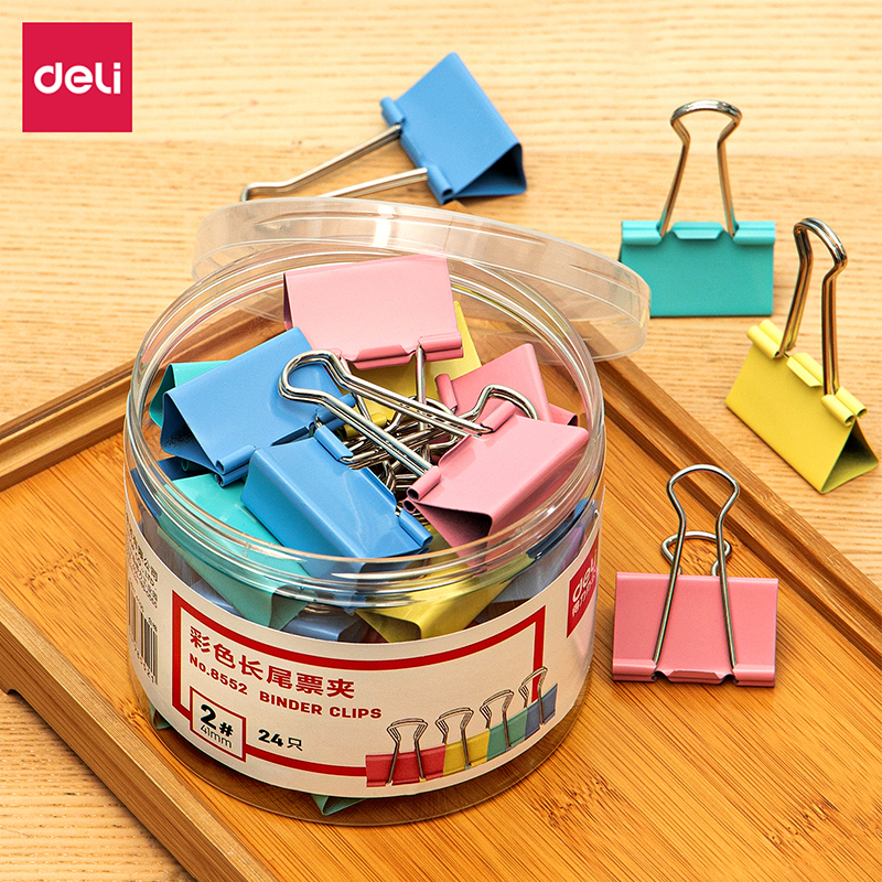 得力8552-24只桶装41mm精装彩色长尾票夹