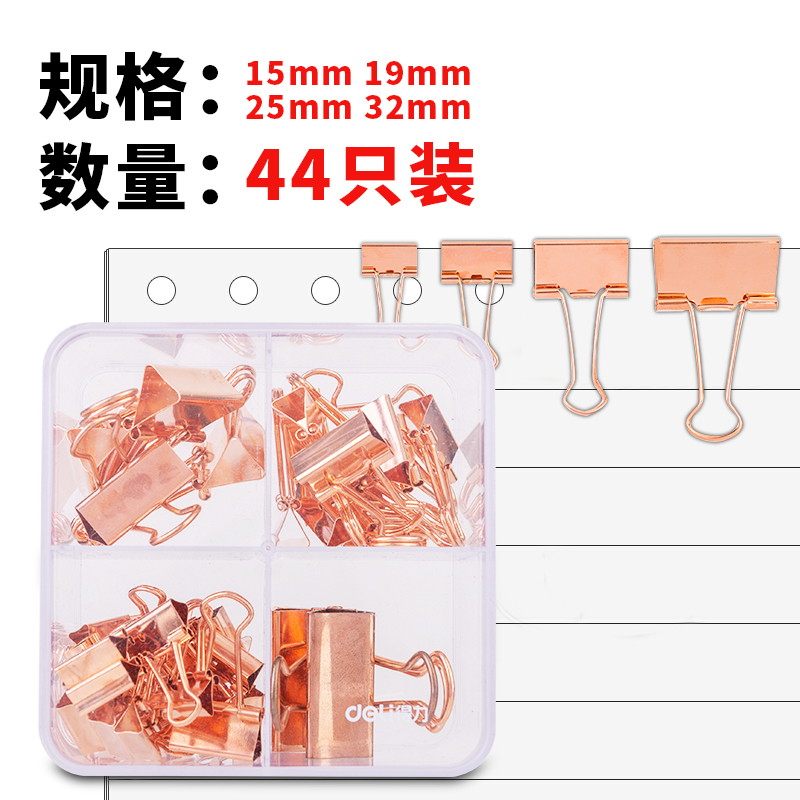 得力78201-12只盒装25mm玫瑰金长尾票夹(6盒/中)