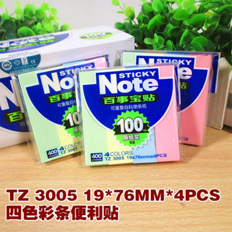 得力7730-76*19mm/100张*4彩色四分条百事贴(混)(12袋/盒)