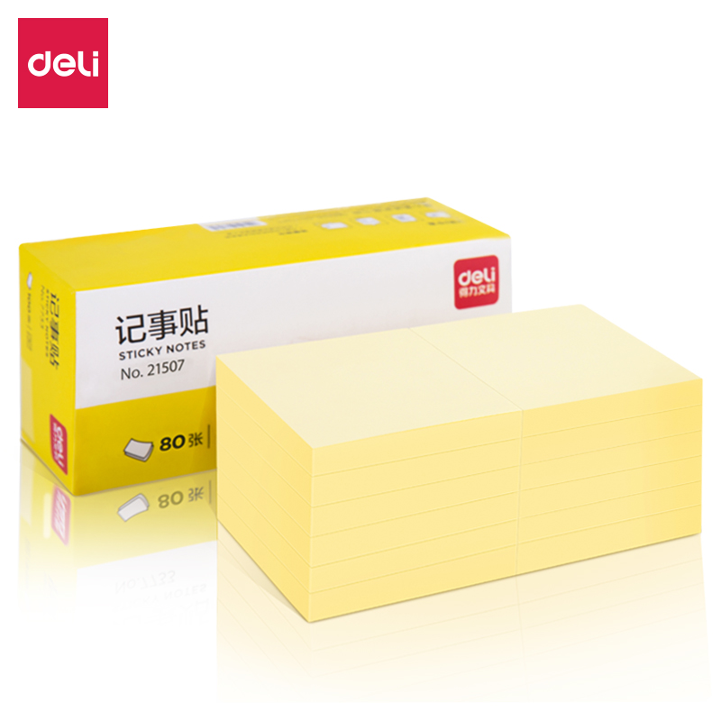 得力7734-76*101mm/100张百事贴(淡黄)(12袋/盒)