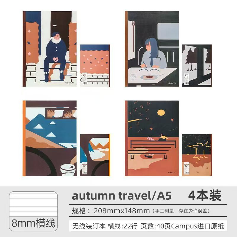 国誉WCN-DNA54-J117-IllustratorA5/40页无线装订本-Autumn-travel(4本/包)