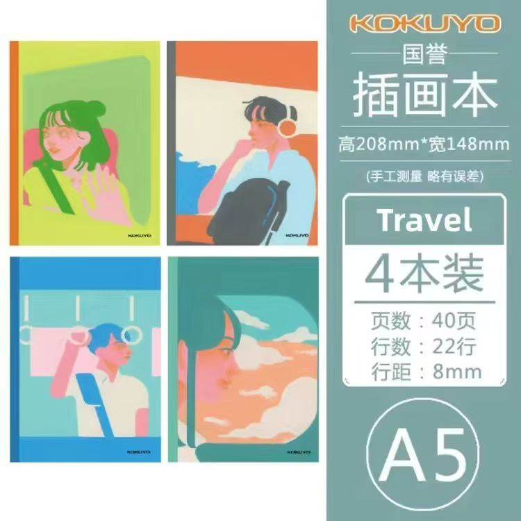 国誉WCN-DNA54-J110-IllustratorA5/40页无线装订本·Travel(4本/包)
