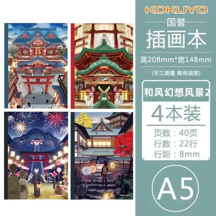 国誉WCN-DNA54-J108-IllustratorA5/40页无线装订本·和风幻想风景II(4本/包)