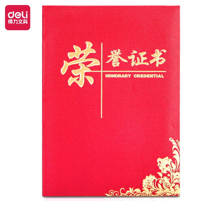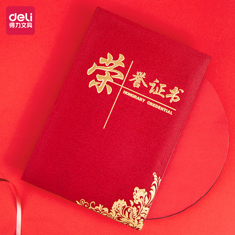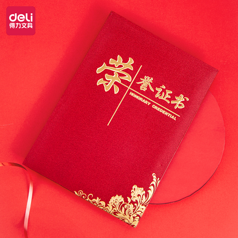 得力24840-16K烫金工艺荣誉证书-红(红色)(10本/中)