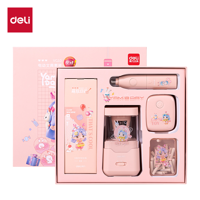得力68918A-古风女孩电动文具套装(樱花粉)
