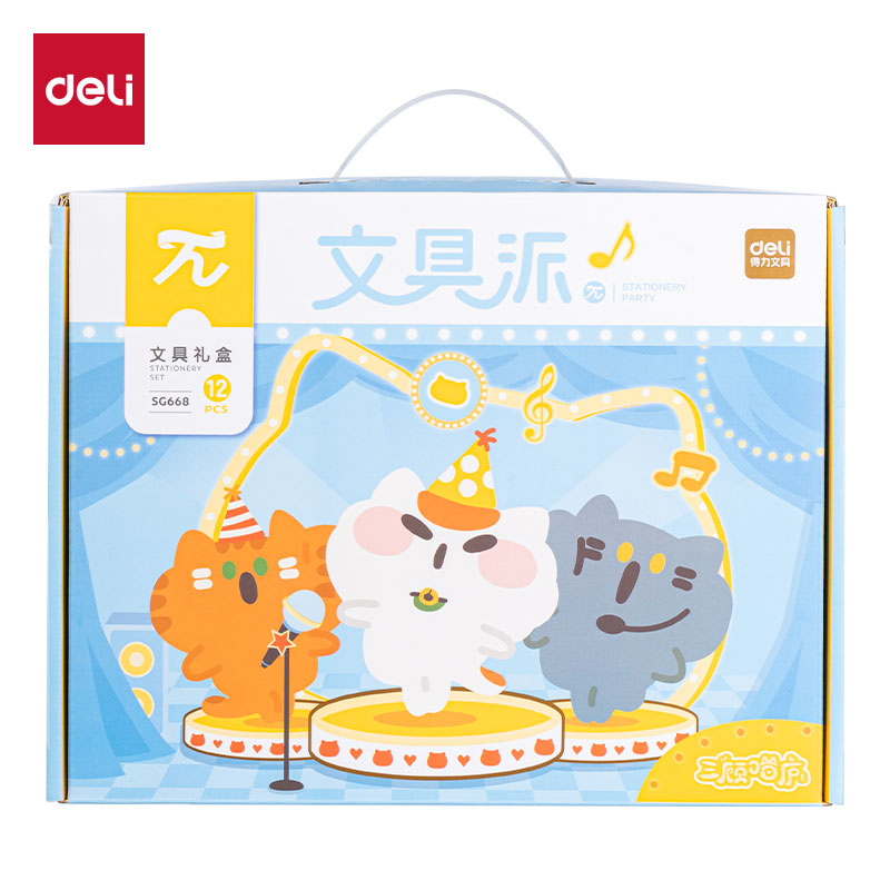 得力SG668-12件套三顾喵庐文具礼盒套装(8套/中)